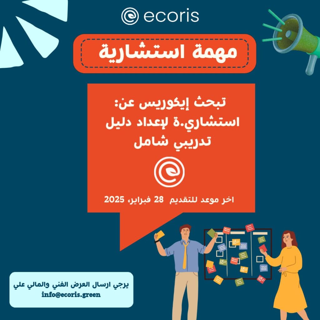 إعداد دليل تدريبي حول البيئة والعدالة المناخية للشباب تعلن مؤسسة إيكوريس للتنمية المستدامة عن فرصة استشارية لإعداد دليل تدريبي شامل يستهدف تدريب الشباب على مفاهيم البيئة، العدالة المناخية، وتغير المناخ،